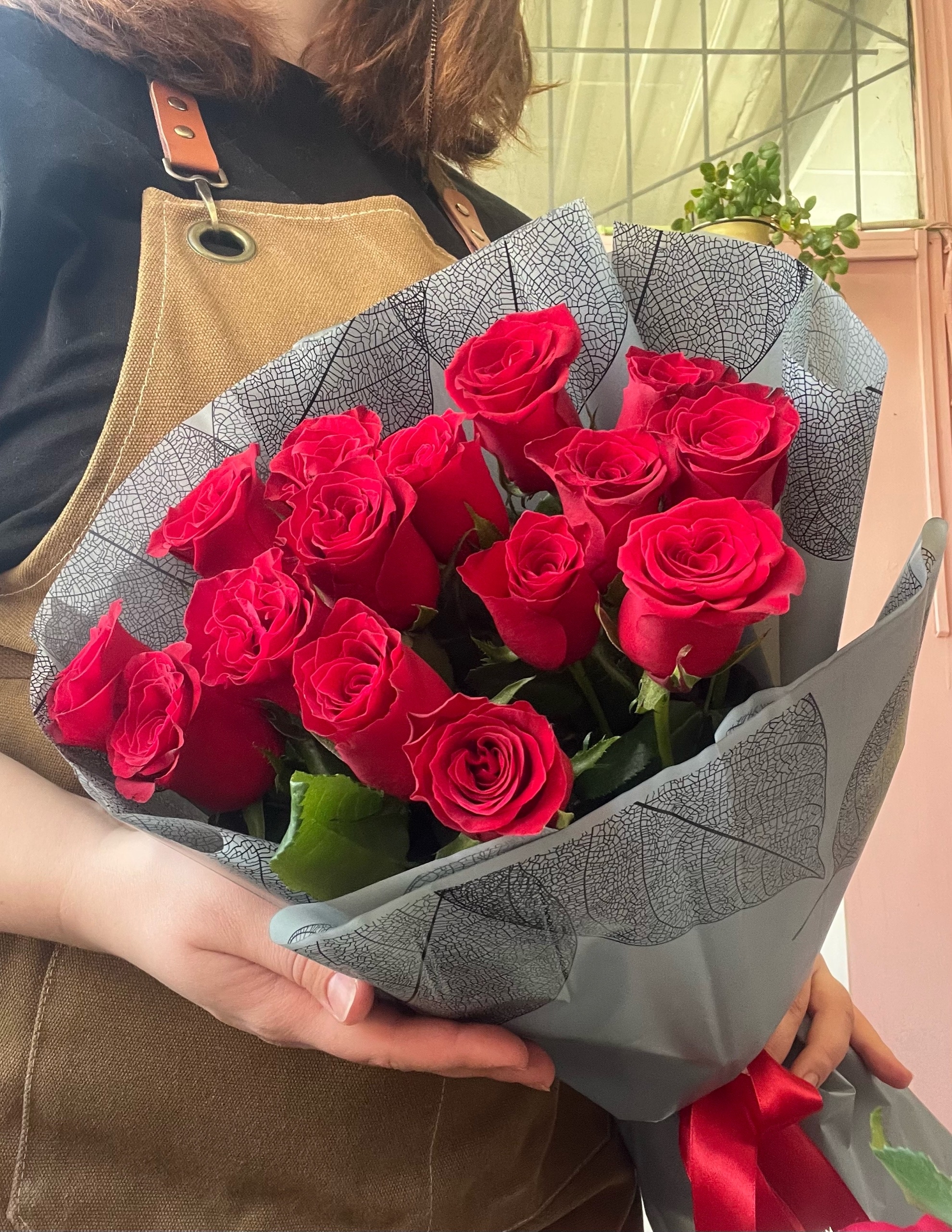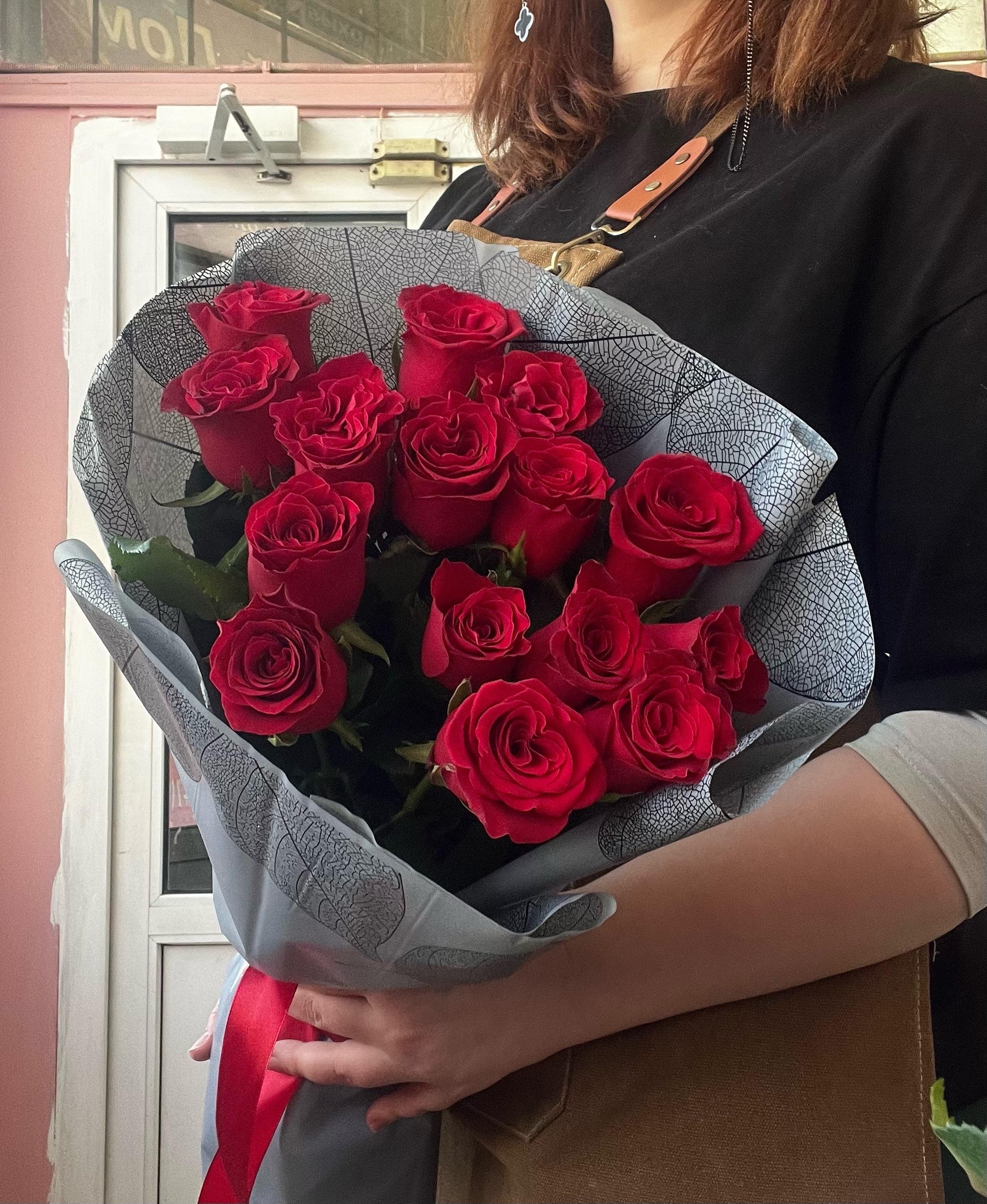- Роза красная Кения 50 см - 15 шт;